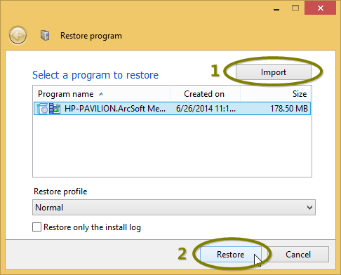 在当前系统上恢复兼容的程序/捆绑包备份存档。